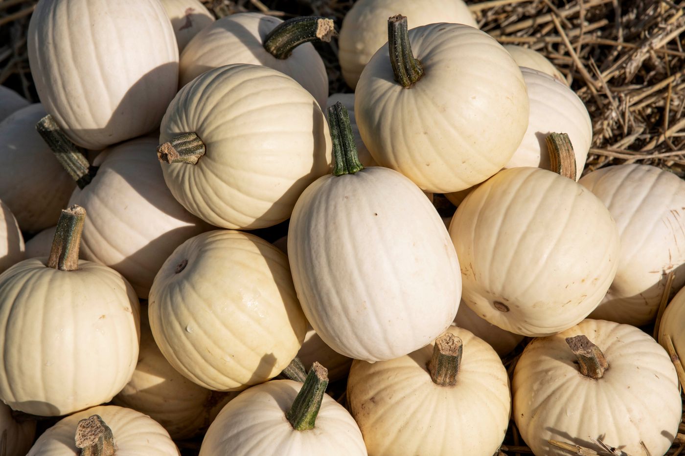 Small fruits with bright white skin and strong dark green stems.