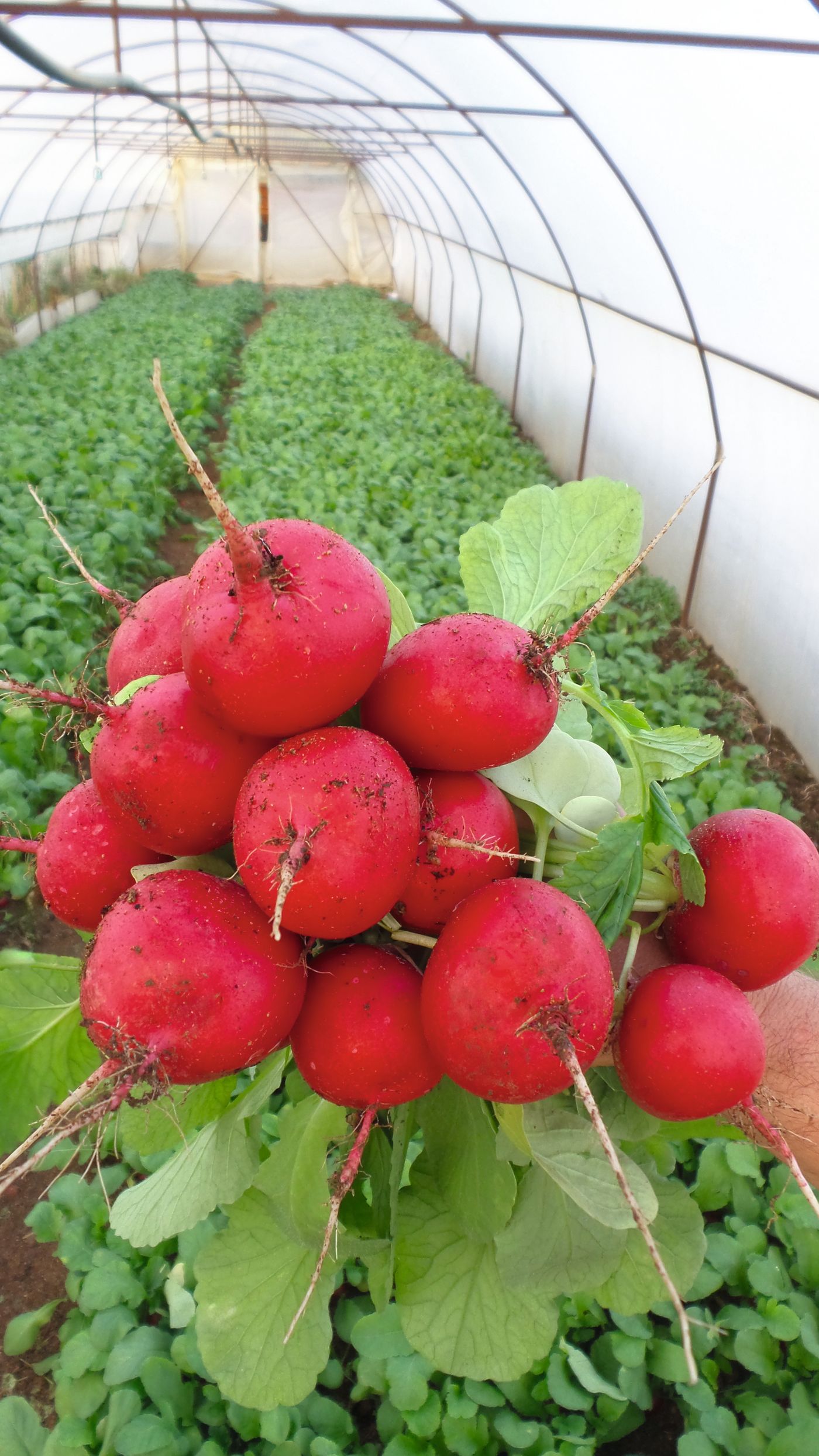 Early/late variety with short tops, thick red skin and shiny red bulbs.